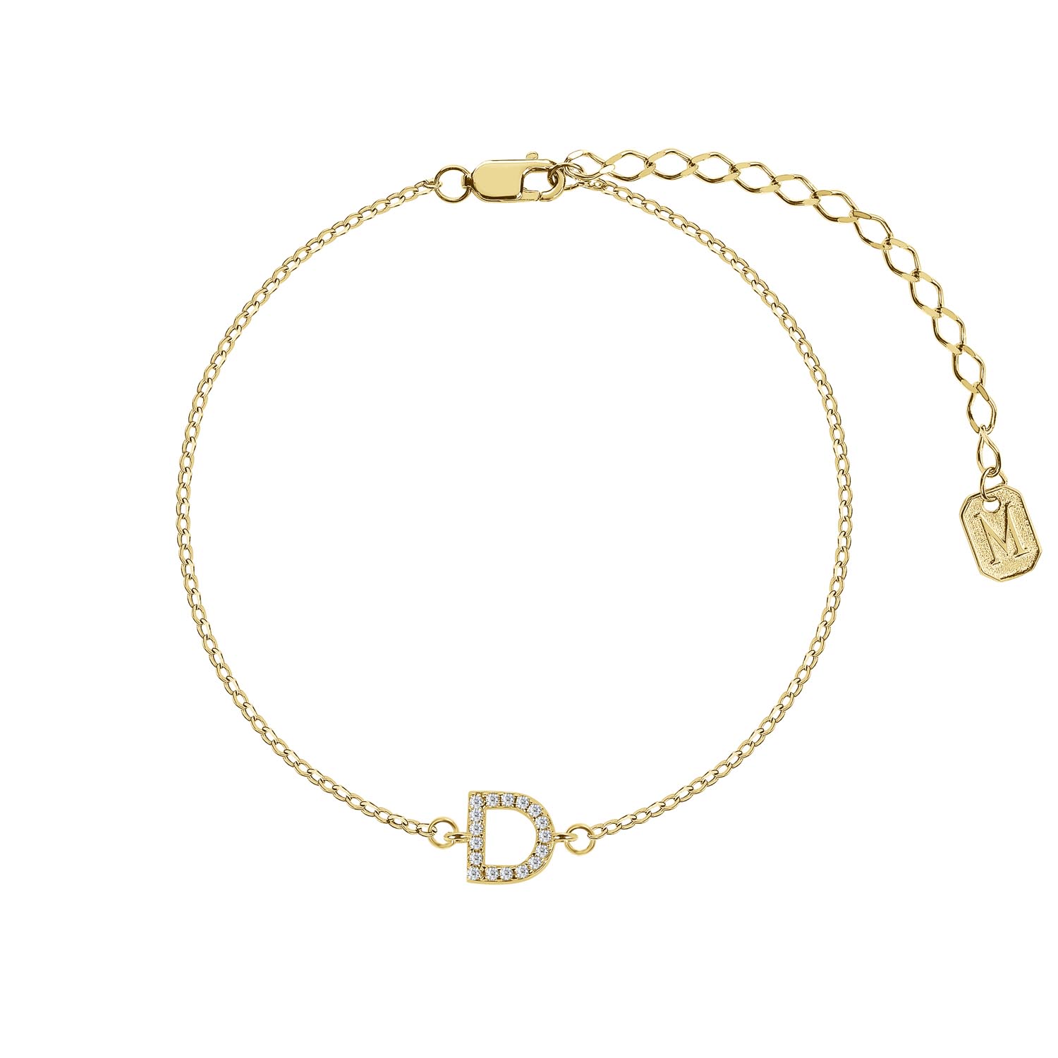 Браслет серебро 925 серебряный с буквой D ювелирный в позолоте