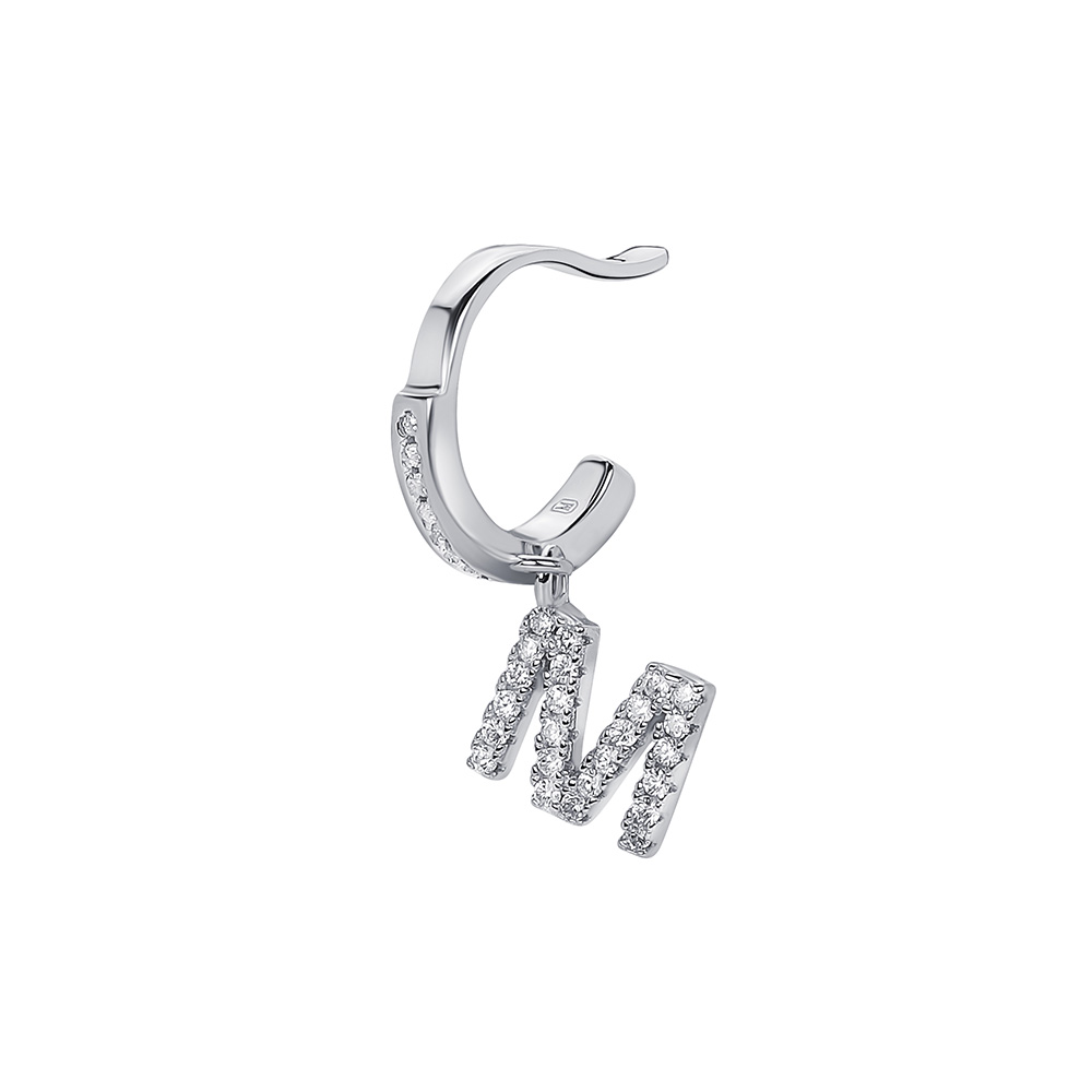 Кафф с буквой M – современное проявление индивидуального стиля. Эта изящная моносерьга в форме английской буквы выполнена из серебра 925 пробы с родиевым покрытием, украшенная сверкающими фианитами.