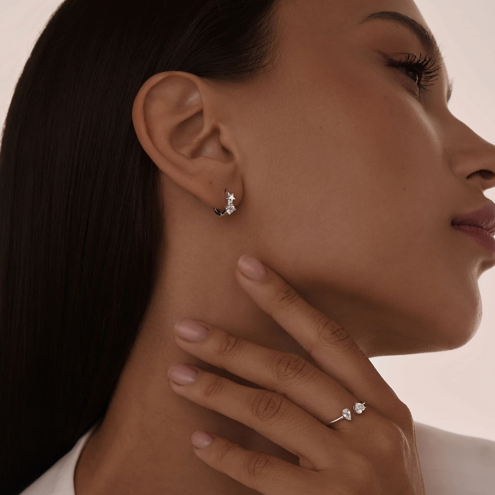 Серебряная моносерьга кольцо звезда с фианитами